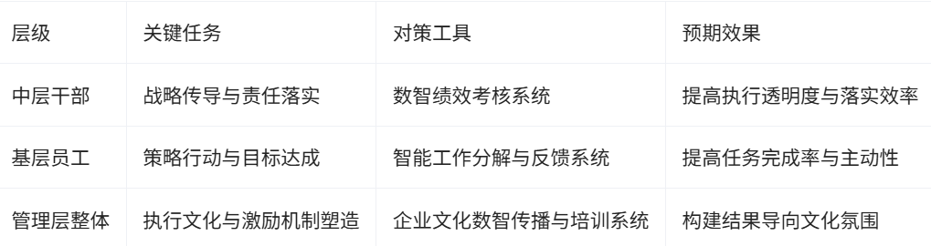 基层员工既是执行链条的末端,同时也是与实际运营最直接的接触面,他们的工作态度与执行质量将直接决定最终成果的好坏。然而在复杂的央国企体系中,基层往往面临目标不够明确、方法不够具体、沟通不够顺畅等现实问题。如果中层传递的任务没有被充分细化,或未在员工心中形成可执行的日常行动计划,那么战略目标就容易在最后一公里“折损”。因此,从干部到基层,需要建立一套无缝衔接的执行机制,让上层的战略意图与下层的具体行动形成持续、稳定的互动。