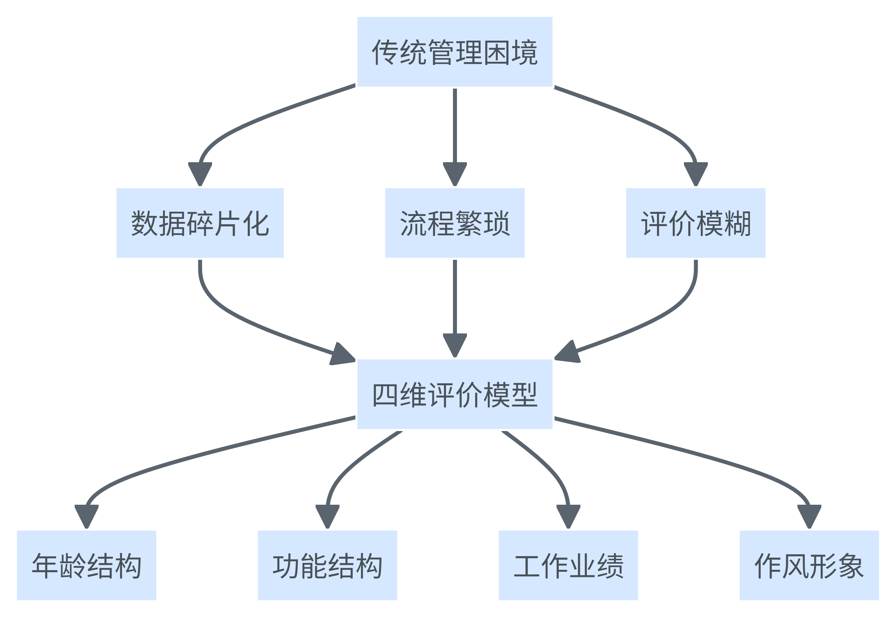 此外,评价模糊化依然是干部管理的顽疾。传统模式下,干部评价多以定性描述为主,缺乏清晰量化的标准和刚性依据。班子成员的优劣、结构短板往往难以一目了然,选人用人决策容易受到主观影响,甚至可能造成结构失衡和用人失准等隐患。