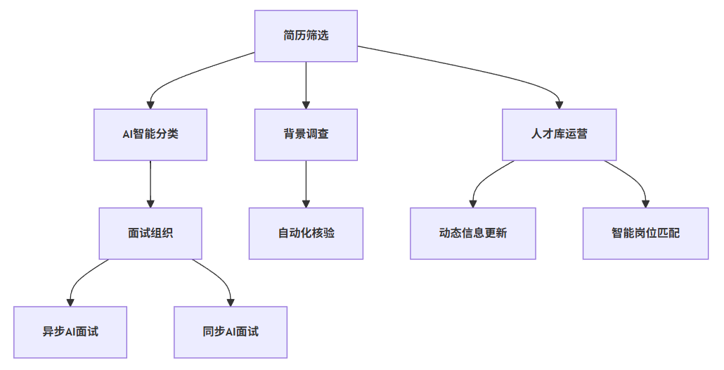 具体来说,在简历筛选环节,AI系统通过自然语言处理技术自动识别岗位需求与简历内容,高效过滤海量候选人,显著缩短筛选周期;面试阶段,不论是异步视频面试还是同步在线互动,AI都能协助HR分析表达能力与岗位适配度,实现面试流程的标准化与批量化;背景调查则通过AI自动对接权威数据库,快速完成学历、经历等核验,有效降低人为疏漏风险;人才库运营方面,AI实现动态信息更新与智能岗位匹配,推动人才资产的持续盘活。