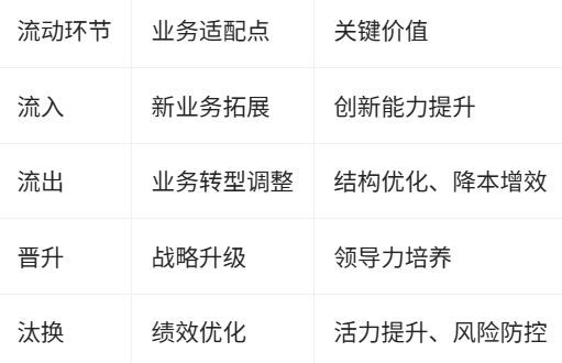 此外,鉴于人才流动机制的优化离不开与业务流、信息流的高度协同,企业只有将人力资源配置与企业整体运营紧密结合,才能实现组织目标与个人价值的双向驱动,而这也是提升组织运行效率和创新能力的重要保障。
