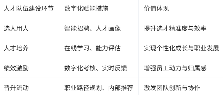 进入数字经济和智能化发展的新阶段,随着央国企日渐加快推进高端技术人才、复合型管理人才等多层次人才的引进步伐,数字化技术在人才管理中的应用也日益广泛,例如智能招聘、数据驱动绩效管理、在线学习与能力评估等手段正逐步改变传统人才管理模式,助力企业实现精准化、科学化的人才队伍建设。