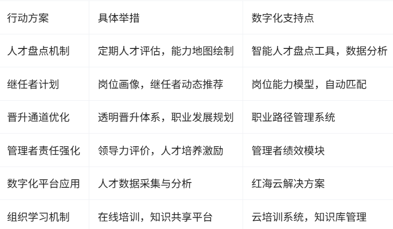 全面推进人才梯队建设离不开数字化HR平台的赋能。为此,企业可以借助红海云等专业人力资源管理平台,实现从人才数据采集、分析到梯队规划的全流程智能化管理。平台提供的数据驱动决策支持,帮助组织提升人才管理效率和科学性,使企业能够实现人才梯队建设的自动化和精准化,推动战略目标的落地和核心竞争力的持续增强。