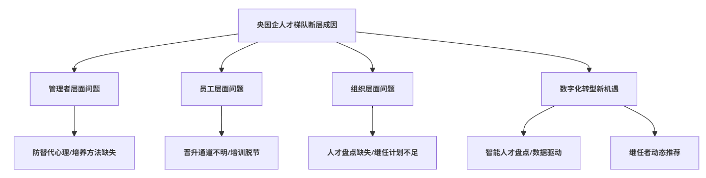 管理者、员工和组织机制三者的短板互为因果,最终共同引发人才梯队断层这一现实挑战,而只有系统性识别并逐步优化这三维因素,央国企才能有效破解人才梯队的隐形障碍,为后续的数字化升级和组织战略落地提供坚实的人才基础。