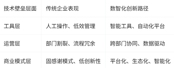 在技术创新驱动下,央国企能更高效地整合数据资源,实现跨部门协同,优化业务流程,进而推动商业模式的持续进化。在这一过程中,企业应注重自主技术的积累、避免陷入同质化竞争,并通过加大研发投入和创新机制建设,形成可持续发展的技术壁垒。数智化不仅提升了企业的整体管理水平,也为应对外部环境变化和行业竞争带来了更多可能:通过工具创新、流程优化和商业模式升级,央国企能够构建坚实的长期壁垒,为组织实现高质量、可持续的发展提供有力支撑。