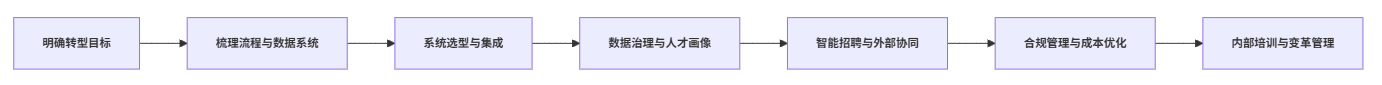 为推进HR数字化系统建设,企业首先需要立足企业战略、明确数字化转型的总体目标。在这一过程中,企业需时刻谨记:转型不仅仅是技术升级,更是管理理念和业务模式的系统变革。为此管理层应结合政策导向、集团发展规划以及实际人才管理需求,制定切实可行的数字化蓝图,并通过高层共识的建立与目标细化,确保数字化转型成为组织上下的共同责任与工作方向,为后续流程优化和系统部署奠定坚实基础。