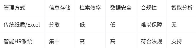 在央国企人力资源管理实践中,员工档案不仅承载着个人信息、履历、合同、绩效等关键数据,更直接关系到晋升、薪酬、考核乃至组织战略调整的科学性。然而,长期以来,许多央国企仍采用本地化档案、Excel等低效工具进行员工档案管理,这种方式在机构规模较小时尚可应对,但随着组织规模扩大、人员流动频繁,档案信息的更新、存储和检索难度显著增加,致使“数据分散”、“信息遗漏”、“查找低效”等错落频频发生,显然其已经难以为企业治理和人力决策提供有力支撑,而更为重要的是,员工档案涉及大量敏感信息,简易化管理却极易出现信息泄露和合规风险,无法满足《个人信息保护法》等法规的要求。