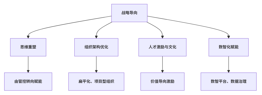 随着“十四五”规划和国有企业改革三年行动方案的逐步落地,赋能型经济组织转型已被明确纳入央国企深化改革和高质量发展的战略高度。国务院国资委多次强调,要用赋能型经济组织替代传统管控型组织架构,推动企业管理理念从短期效益导向转向长期价值创造,这意味着央国企必须加快组织形态变革、实施扁平化改造,并在压缩管理层级、缩短决策链条的同时,提升对市场变化和产业趋势的敏锐度,推动全要素生产率持续提升。这一政策导向既回应了新质生产力发展的时代需求,也顺应了经济数字化转型、产业升级的现实要求。