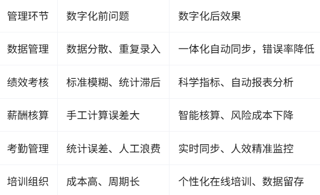 与此同时,国资委等监管部门日益强调数据合规、绩效透明和资源优化,而这也要求企业在人力资源管理中实现精细化管控和高效运转。面对数字化转型压力,央国企需从根本上改变传统管理模式,以智能化系统为抓手,提升数据流转效率、降低人工误差、优化管理流程,实现成本管控与价值创造的双重目标。