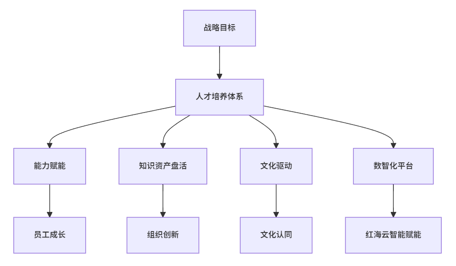 有效的知识资产管理是央国企构建高价值人才培养体系的重要支撑,这意味着企业需通过建立知识库和经验萃取机制,将分散的隐性知识系统化沉淀,并推动组织内部的协同分享与创新应用。更进一步地,红海云智能化平台还将助力知识资产的快速传递和盘活,促进员工与组织能力的同步迭代,在这一过程中知识资产管理不仅提升了企业的创新能力,也为员工成长提供丰富的学习资源,实现组织与个人的双向赋能。