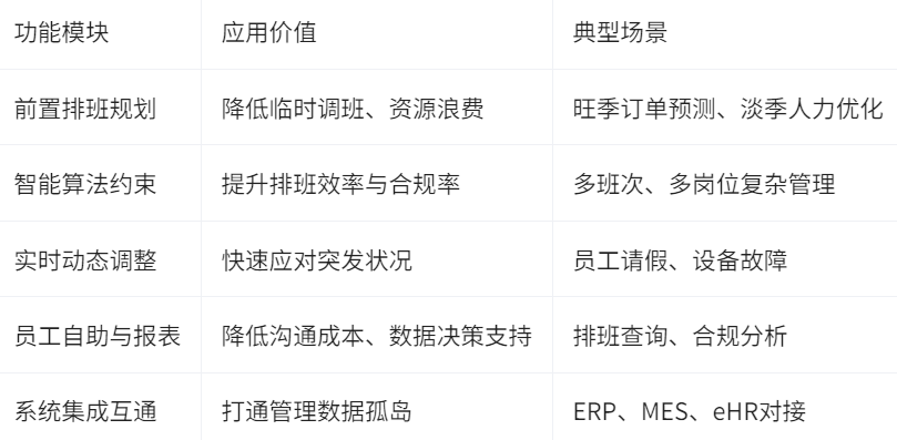 更进一步地,智能排班系统的集成能力为央国企打通了“生产-人力-设备”全链条的数据壁垒——通过与ERP、MES及eHR等系统的无缝对接,工厂能够实现生产计划与人力调度的协同联动,全面提升组织运营效率。这种基于数据驱动的管理模式使央国企能够在激烈的市场竞争中保持高效、灵活与合规的运营状态。可见智能排班系统不仅是央国企降本增效的有力工具,更是推动企业人力资源管理向数智化升级的核心驱动力。