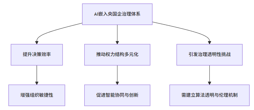 在AI赋能下,央国企的决策与治理体系正在经历由“层级化”向“智能网状化”的转型——AI的感知、预测与反馈能力使组织信息流动更加实时、分布式,推动决策权下沉,提升中层与一线的智能参与度。例如,在风险评估、预算编制、绩效预测等领域,AI已成为高管与中层管理者的“第二大脑”。通过算法模型,央国企能够整合多源数据、开展情景仿真、识别潜在风险,从而实现更科学的战略部署与资源配置。此外,AI的引入也催生了组织内“AI驱动团队”与“智能影子权力”的崛起,推动组织权力结构由单一中心向多元协同演化。