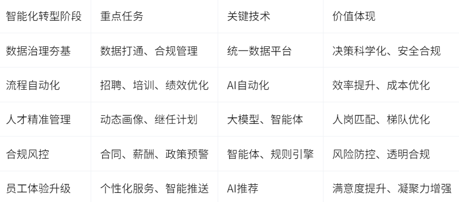 流程智能化成为释放HR团队生产力的重要抓手。利用人工智能驱动业务流程自动化,企业可以高效完成简历筛选、合同管理、薪酬核算等重复性事务,显著降低人为差错率和业务响应时间。如此一来,HR部门能将更多精力投入到战略性人才规划和组织发展等高价值工作中,而智能化的员工服务工具也将让员工获得更加个性化、便捷的支持体验。