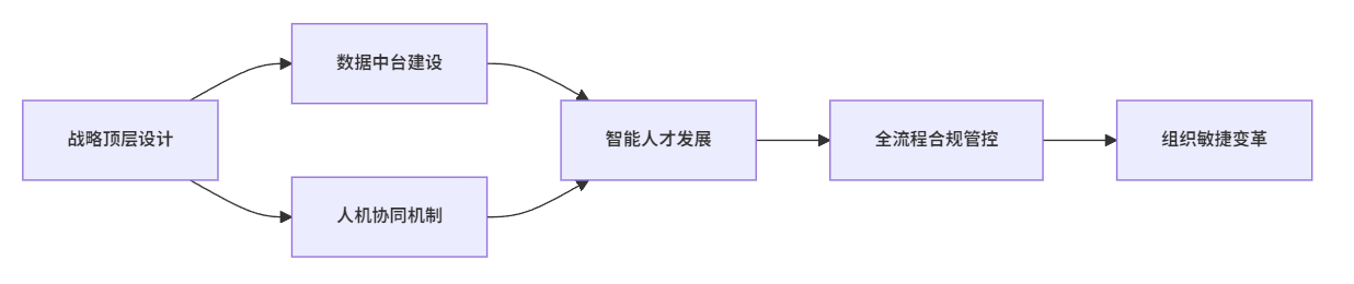 央国企在迈向AI原生组织时首先要制定清晰的顶层设计和战略布局,即管理层需将AI能力纳入企业长期发展规划,明确AI与业务、人才、技术的协同方向,并通过成立专门的AI转型小组,统筹资源、优化流程,保障转型项目高效推进。在这一过程中,顶层设计不仅包括数据标准化、平台一体化,还要涵盖智能化管理制度的建立、为后续各业务线提供标准化工具和管理框架。