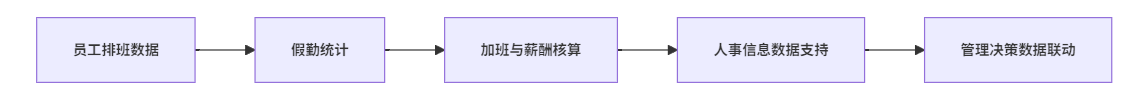 更进一步地,在数字化协同方面,智能排班软件与考勤、薪酬、人事等模块还可实现数据联动,避免“信息孤岛”,使管理者能够一站式掌握员工出勤、加班统计与薪酬核算,为战略决策提供数据支持。在这一过程中,多模块协同不仅提升了管理透明度和数据准确性,还强化了组织高效运作的基础。