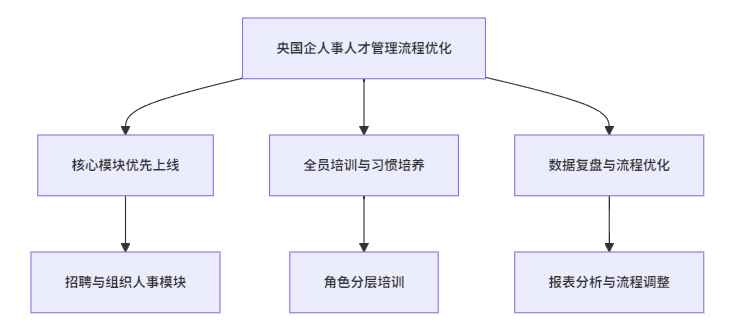 在推动人力资源管理信息化过程中,大部分央国企不仅关注系统的功能完整性,更强调其对组织战略的支撑作用——人才管理信息系统本质上是一套整合招聘、组织人事、假勤、绩效、薪酬等多模块的全流程管理平台,强调数据互通、流程联动与决策辅助,其核心价值则主要体现在三个维度: