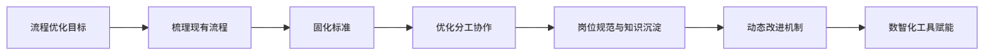 从实际业务层面来看,系统化的流程优化则有助于打破部门壁垒,促进信息流、资源流和人才流的高效联动,实现各环节的无缝衔接。通过标准化操作和明确的责任体系,企业能够有效提升工作执行效率,减少因职责不清、流程脱节带来的错误与风险,并且流程优化也为知识沉淀和经验传承提供了制度保障,推动个体能力向组织能力的转化,进一步地增强企业的创新活力和核心竞争力。