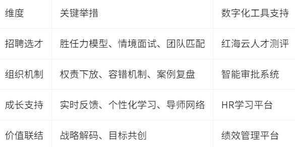 鉴于优化管理机制是激发员工自驱力的核心环节,企业需要打破传统的层级审批与流程管控、推动权责下放,让员工在职责范围内拥有更大自主权。具体来说,企业需建立创新激励和容错复盘机制,为员工创造安全试错的环境,并鼓励主动创新和跨界协作。与此同时,企业还需通过智能审批和任务管理工具,实现流程透明化及高效协同、激发团队活力。