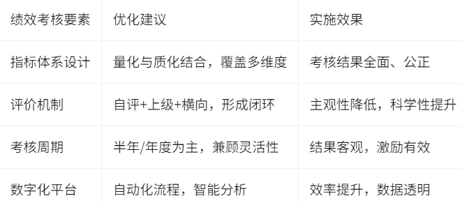 在考核方法选择上,企业可采用多元评价机制,如自我评估、上级评价、横向考核(跨部门反馈)等,形成“360度评价”闭环,同时结合企业实际决定考核周期,在保证评价的客观性的同时兼顾考核成本与员工发展需求。在此基础上,考核过程也需强化绩效沟通与反馈,如定期开展绩效面谈,从而帮助员工明确目标、改进不足,而为提升考核的科学性与操作性,企业还应制定统一的评分标准与考核流程,进一步确保考核结果的公正性和可比性。