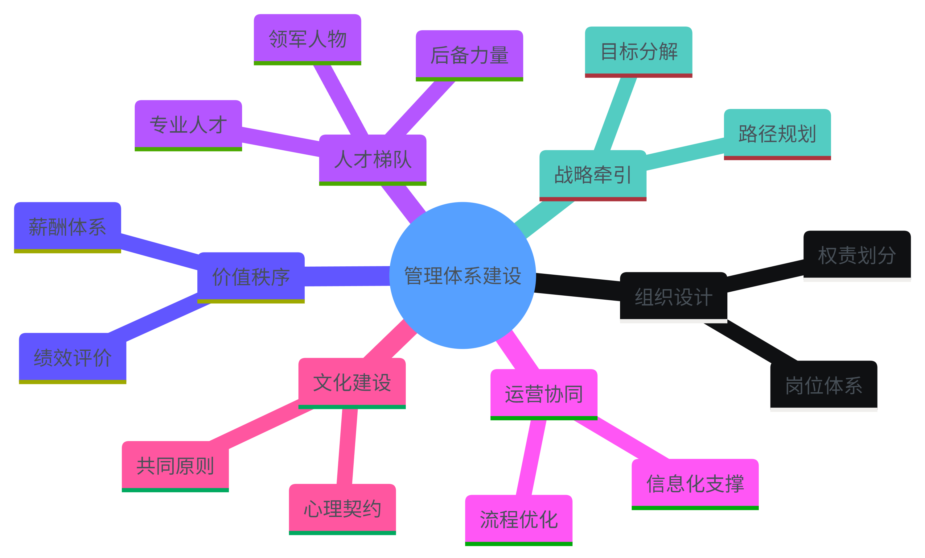 管理体系的建设,根本上是为战略落地和价值创造服务的,而有效的管理体系应包括战略牵引、组织设计、权责体系、激励机制、运营协同、文化建设等核心要素,形成从顶层设计到执行落地的闭环。