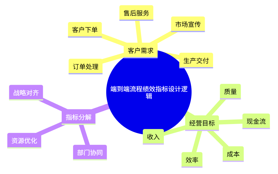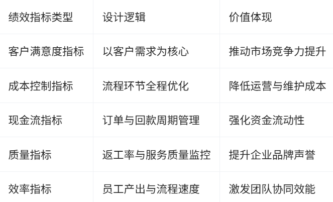 其一,企业应系统梳理“需求-现金”全流程,在厘清各业务环节对战略目标的贡献关系的同时通过流程建模与数据分析,识别关键节点和瓶颈,明确绩效指标的设置逻辑;