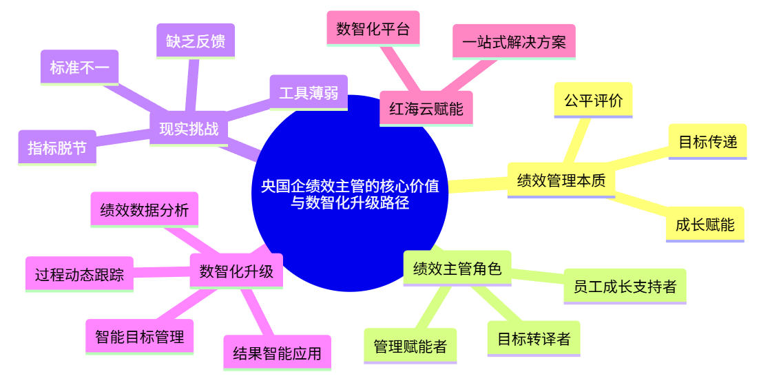央国企绩效主管的核心价值绝不仅限于流程执行和表格管理,而在于通过目标传递、机制优化和成长赋能,成为推动组织战略落地和人才发展的关键力量,而在面对数智化转型的新机遇时,绩效主管更应主动拥抱数字化工具,提升绩效管理的科学性和高效性。可以预见的是,随着红海云等领先人力资源管理平台的持续创新,央国企绩效管理将实现从传统“人治”向“数智驱动”转变,构建更加公平、透明、高效的绩效管理生态,赋能企业高质量发展。
