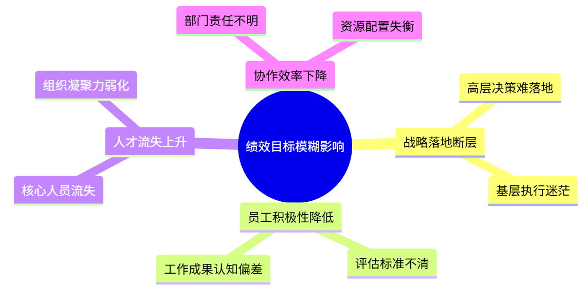 与此同时,绩效目标不清也将直接影响员工的积极性与参与度。其具体表现为员工在考核时无法准确理解自身贡献,继而产生“努力无效”或“标准不明”的困惑,久而久之团队士气下降,组织凝聚力也就因此减弱。大量调研显示,目标模糊的企业更易出现核心人才流失,人员稳定性和创新动力受到严重影响,并且组织内部责任归属模糊也将使得部门间协作效率降低,令资源配置难以精准匹配业务需求。