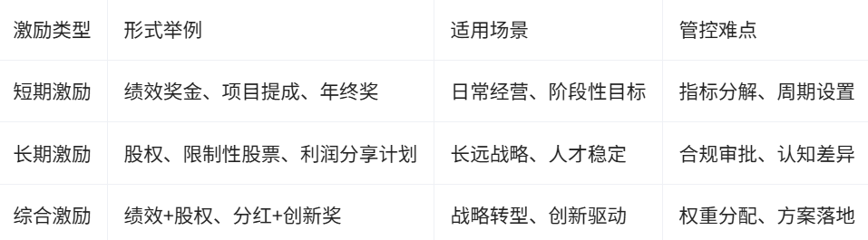 短期激励通常通过绩效奖金、年终奖和各类项目提成来实现,能够快速激发员工的工作积极性,确保企业日常经营目标的达成;而长期激励则侧重于中长期利益绑定,如股权激励、限制性股票和利润分享计划等,有助于稳定核心人才队伍,驱动企业战略目标的实现。理论上,长短激励应当相辅相成,既能满足员工的即时回报诉求,也能够塑造对企业未来的持续承诺,然而在实际推进过程中,央国企在平衡长短激励时面临诸多现实难题。