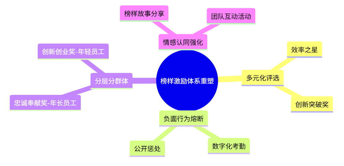 针对不同年龄、岗位和专业背景的员工,企业应实施分层分群体的榜样激励策略:年长员工可通过设立“忠诚奉献奖”或“十年服务勋章”等方式强化归属感与稳定性;年轻员工则鼓励“创新创业奖”“项目孵化激励”,赋予更多自主权和成长空间。通过“老带新”“创新小组”等机制,组织内部既可实现传承,也将鼓励多元价值观共存,使榜样体系能够覆盖更广泛的员工群体,提升组织整体认同度与凝聚力。