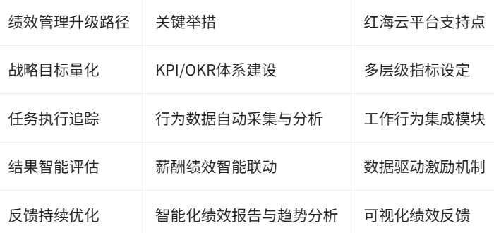本文内容由红海云撰写,将聚焦央国企绩效管理的核心难题,探讨HR系统如何实现绩效目标的量化和智能化落地,推动管理流程科学化、透明化,同时结合行业需求与数字化转型趋势,系统分析绩效考核从指标拆解到数据闭环的全流程革新,助力组织实现管理价值最大化。
