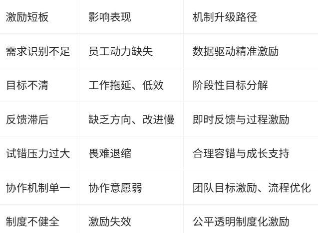 与此同时,“员工面对复杂或全新任务时畏难退缩”的现象背后既有对失败追责的忧虑,也有对资源支持的缺乏,这意味着管理者如果仅靠压力施加而忽视支持性环境的构建,将容易让员工陷入消极应对。此外,在团队协作层面,由于传统的考核与激励机制更强调个体表现,员工之间也将因此形成隐性竞争、协作动力不足等一系列问题,团队目标难以落地。