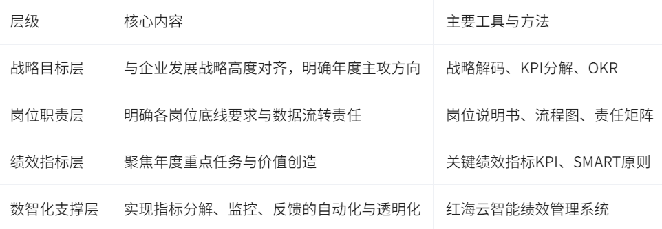 指标分层不清。岗位职责与绩效指标混淆,导致激励失真,无法有效引导员工聚焦企业最核心目标。