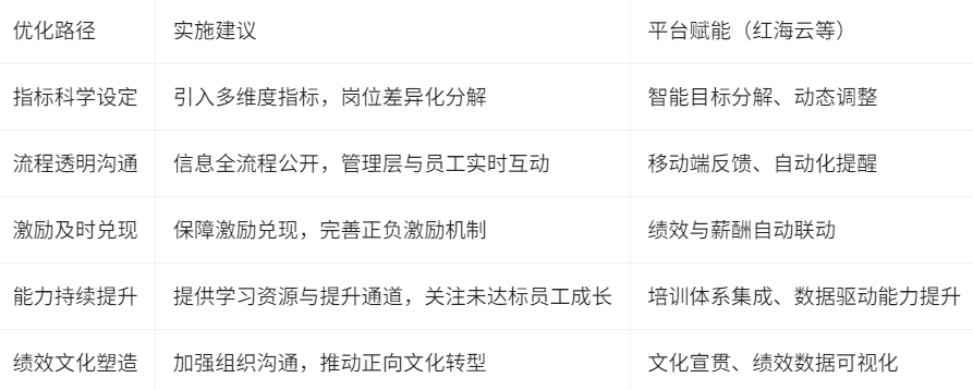 优化绩效考核的终极目标是形成积极健康的绩效文化——企业应通过制度宣贯、管理者示范和持续沟通,构建“共创、共担、共赢”的绩效理念,使智能化管理工具不仅能实现考核数据的可视化展示,还能够促进组织内部知识分享和经验交流,推动绩效文化的正向转型,以绩效考核作为激励创新、促进协作的驱动力,在数字化时代实现高质量发展。