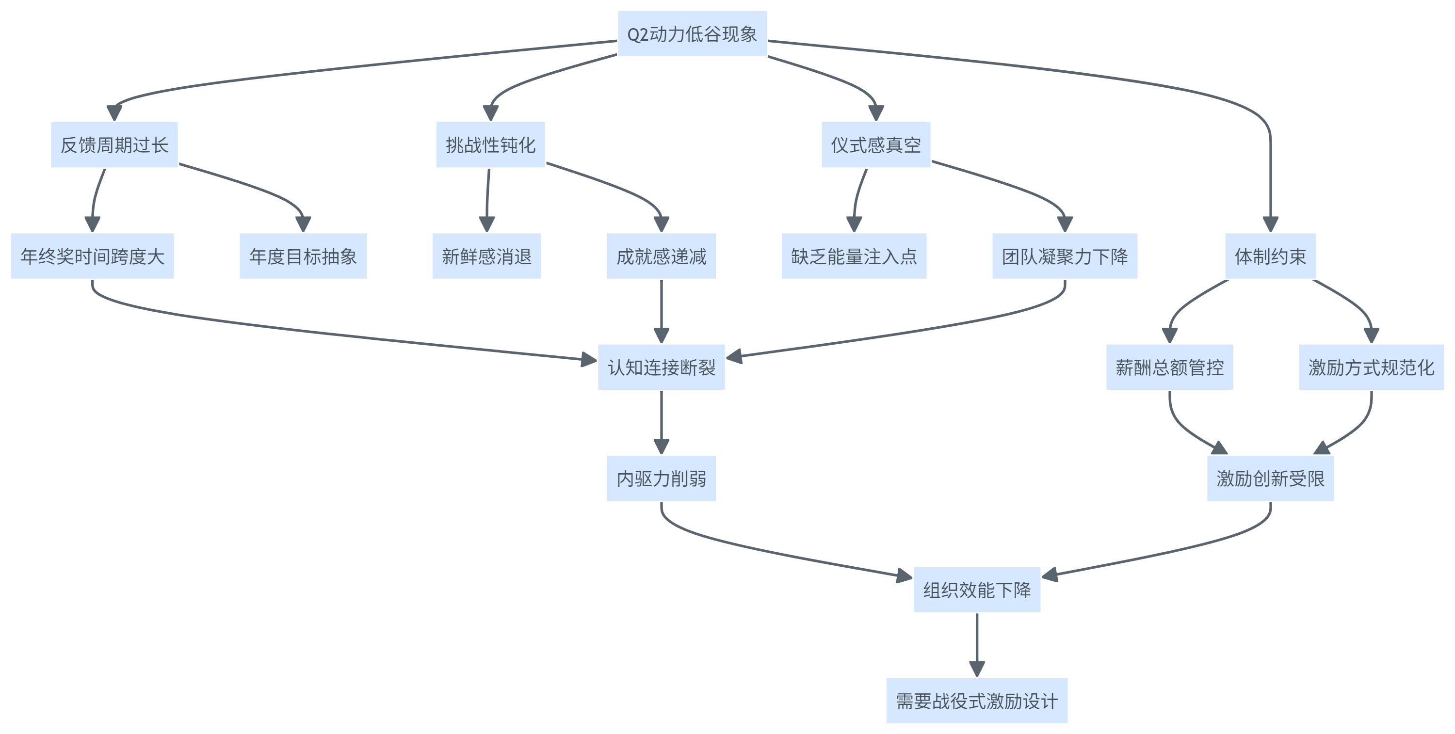在深入剖析Q2动力低谷现象时,需要从组织行为学和管理实践两个维度进行系统性诊断。央国企组织在这一时期面临的挑战往往具有其特殊性,这与组织规模、管理体制、文化基因等多重因素密切相关。反馈周期过长是首要问题,年终奖作为"期货"性质的激励,与当前工作行为之间存在巨大的时间跨度,而年度目标又过于宏大抽象,缺乏能够即时触达员工的短期激励节点,这种时间维度的错位导致员工难以将当下努力与未来回报建立清晰的认知连接,进而削弱了持续奋斗的内驱力。