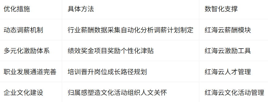 仅靠基础薪资已难以满足央国企不同类型岗位的激励需求,因此企业需要加大绩效奖金、项目奖励、技能津贴等浮动激励项目的设计与实施力度。针对技术、创新等重点岗位,专项激励能够激发员工创造力和工作动力,而多元激励体系则能够根据团队业绩、个人成长、市场行情设定差异化奖励标准,增强员工对企业的认同感和归属感。此外,依托红海云等智能化管理平台,企业还可对激励方案进行灵活调整,以确保激励公平性和有效性、进一步稳住核心人才队伍。