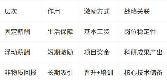 浮动薪酬:通过绩效奖金、专项奖励等方式,与任务产出直接挂钩,形成短期激励;