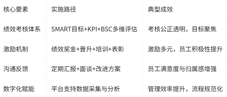 行业领先实践显示,绩效与激励联动机制的优化具有明显的战略价值——以某大型央企为例,企业在引入智能绩效管理平台后,绩效指标涵盖项目进展、创新成果、团队协作等多维度,并且考核数据实时透明,员工能够清晰了解自身表现与组织目标的关联;与此同时,企业还将绩效奖金、岗位晋升、培训机会和精神表彰有机整合,构建多通道激励体系。如此一来,员工工作主动性和创新能力显著提升,团队协作也更加紧密,组织效率和市场竞争力更是实现了同步增长。
