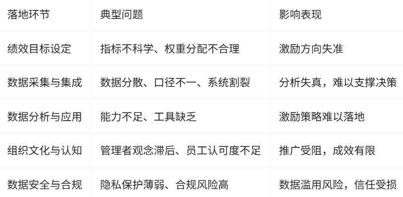 三、数据化激励的落地难点与实践痛点