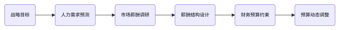在明确了薪酬预算的战略定位与激励本质之后,央国企需要构建科学、系统的预算编制流程,以保障管理目标的顺利实现,且整个流程需以企业发展战略为起点,贯穿人力资源规划、市场薪酬调研和财务约束等关键环节,进而确保薪酬预算能够真正服务于组织目标。