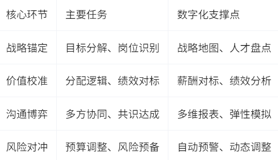 战略锚定:预算的起点不是“有多少钱”,而是“打什么仗”,这意味着企业必须首先明确年度战略目标、业务重点和关键岗位需求,并通过人力资源数据分析锁定核心人才和薄弱环节,确保薪酬资源精准投放在最具价值的领域。在这一过程中,战略目标应层层分解,直至可量化的岗位和部门,从而有效支撑组织整体布局。
