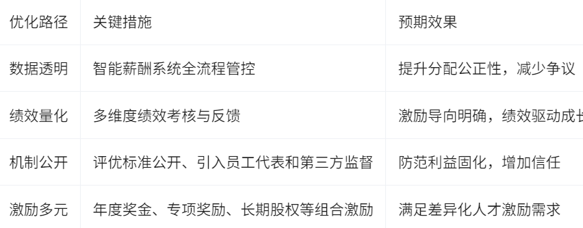 实现分配规则的公开透明,是提升员工认同感和组织信任度的关键。因此,企业需通过内部公告、员工代表大会等多种方式,将年终奖分配标准、考核权重、评优条件等信息向全员披露。与此同时,企业还可适度引入员工代表和第三方监督力量、对分配流程进行全程监督,以防止利益固化和暗箱操作,也只有让分配制度在阳光下运行,企业才能打消员工对分配不公的疑虑,营造积极向上的组织氛围。