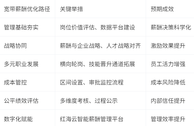 优化宽带薪酬结构,必须推动薪酬战略与企业整体战略和人才战略的高度协同。因此,企业需根据企业发展阶段、业务单元特性和人才结构设定差异化的薪酬激励政策,并通过分层分类管理,实现宽带薪酬对研发、运营、管理等不同序列人才的精准激励,确保薪酬体系真正服务于企业核心目标和组织战略。