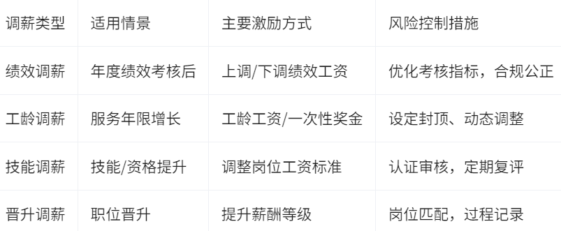 央国企在年度调薪过程中,除了绩效导向外还需综合考虑员工工龄、技能提升与晋升发展等多元因素,以构建立体化的调薪通道:其中,工龄调薪是稳固团队、增强员工忠诚度的重要手段,企业可通过设定工龄工资或工龄奖金激励员工长期服务于企业、有效减少人才流失风险,更有部分央国企设立了封顶机制,在兼顾激励与成本控制的同时确保了薪酬激励的合理边界;技能考核调薪则聚焦于员工能力提升和岗位胜任力建设,使员工通过培训、考取资格证书或技术等级晋升后获得相应薪酬调整,从而鼓励个人持续学习与能力成长;与此同时,晋升调薪作为员工职业路径的重要激励节点,亦可确保人才梯队建设与岗位匹配,推动企业组织能力整体提升。