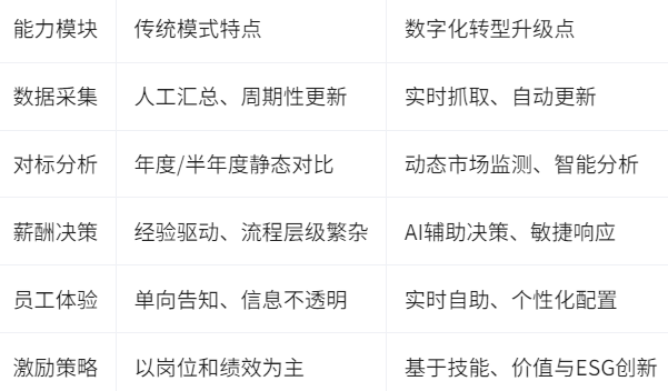 数字化转型是薪酬管理升级的必然选择,而依托红海云等数字化平台,央国企可实现薪酬数据自动采集、智能分析和个性化推荐,提升激励方案的科学性和透明度。员工通过平台可自主查询薪酬明细、配置福利选项,享受便捷的数字化体验,可见数字化工具不仅能够优化管理流程,还为薪酬策略的敏捷调整和精准落地提供强大支持。