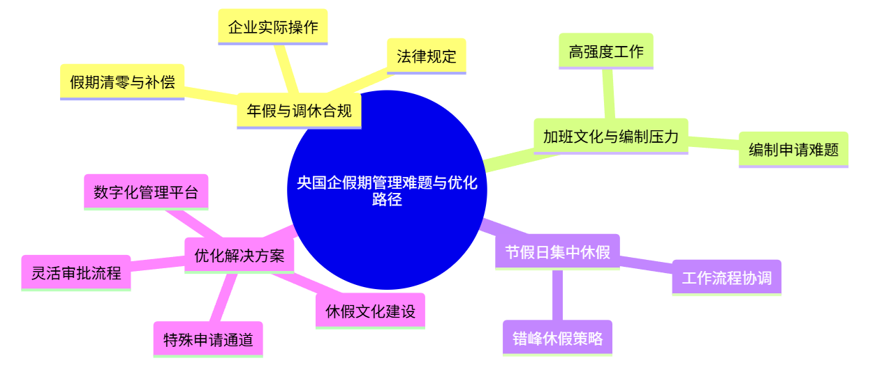 随着社会节奏加快,央国企员工往往将年假和调休假集中在法定节假日前后使用,以实现休假和家庭生活的最大化结合。这种集中休假方式虽然契合员工实际需求,但在管理层面却带来了显著挑战:部门负责人既要确保工作任务的连续性,又要统筹安排员工的休假计划,避免因人员大量同时离岗导致业务流程受阻。