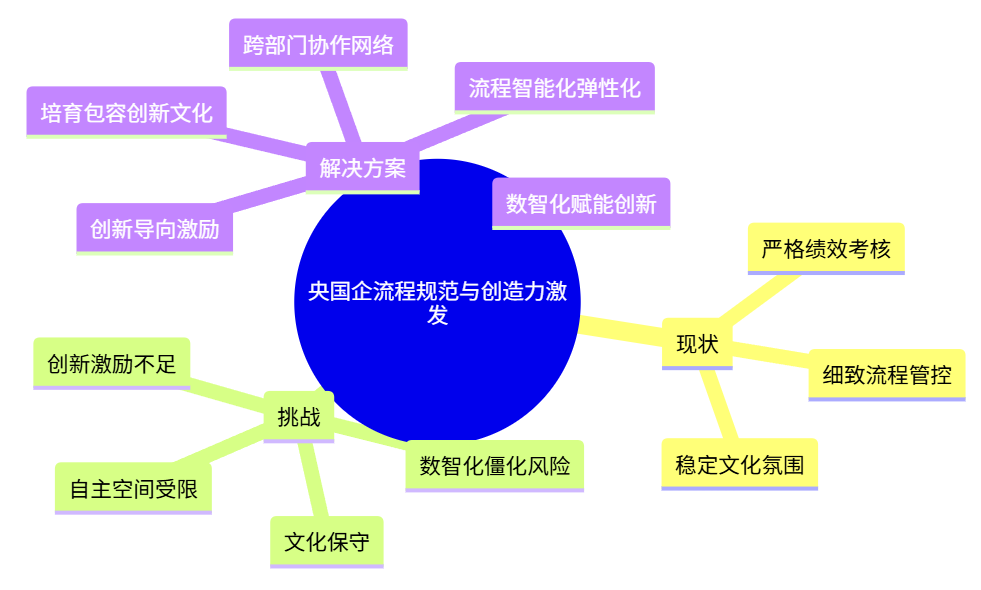 深入分析央国企流程规范与员工创造力受限的现象,可以发现其根源主要体现在以下几个方面: