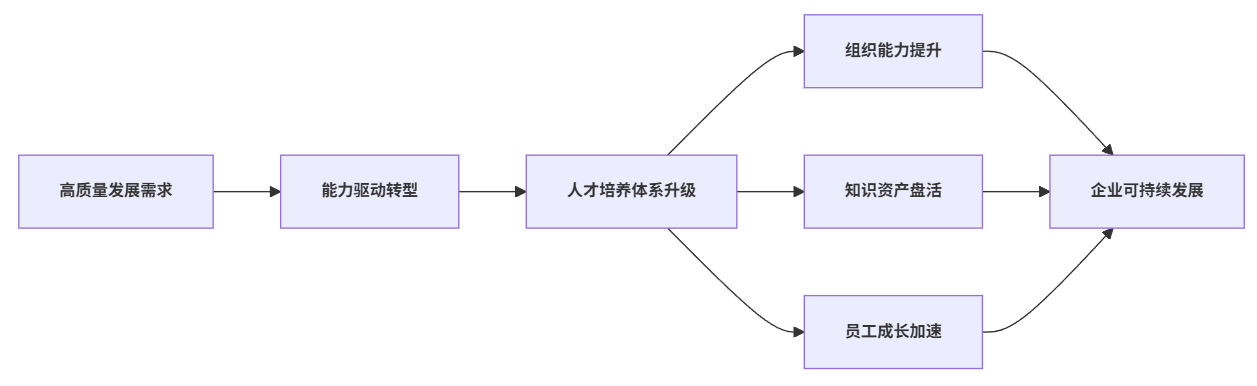 在全球经济深度变革与我国经济高质量发展的新阶段,央国企作为国民经济的骨干力量正面临着转型升级的历史任务——高质量发展不仅要求企业持续创新,更对人才队伍提出了前所未有的高标准。然而,过去依靠外部机会驱动和人才争夺的模式,显然已经难以支撑央国企应对复杂环境、实现战略目标。因此,伴随数智化浪潮和政策对人才强企的高度重视,央国企亟需构建适应自身发展需求的系统性人才培养体系,推动组织能力与员工成长的协同进化。