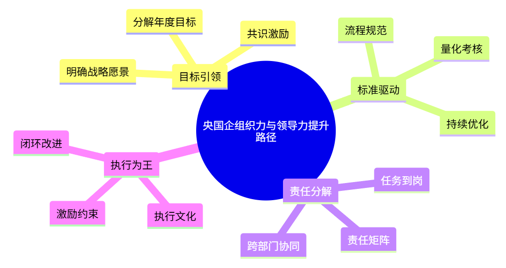 在实际管理过程中,央国企应注重将宏观目标转化为可衡量、可落地的具体任务,并通过科学的目标管理体系(如SMART原则),将企业年度重点与个人绩效有机结合,实现全员对企业使命的高度认同。只有目标明确、方向统一,团队才能形成合力,为组织力和领导力的提升打下坚实基础。这种由目标引领的高效团队模式不仅推动企业在复杂环境下稳健前行,也为组织创新和数字化转型提供了坚强支撑。