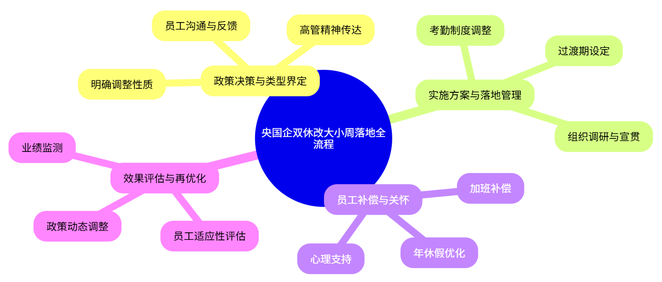 面对双休改大小周的决策落地,人力资源部门需从全局出发,精准把握政策背景、调整类型及员工心理预期。