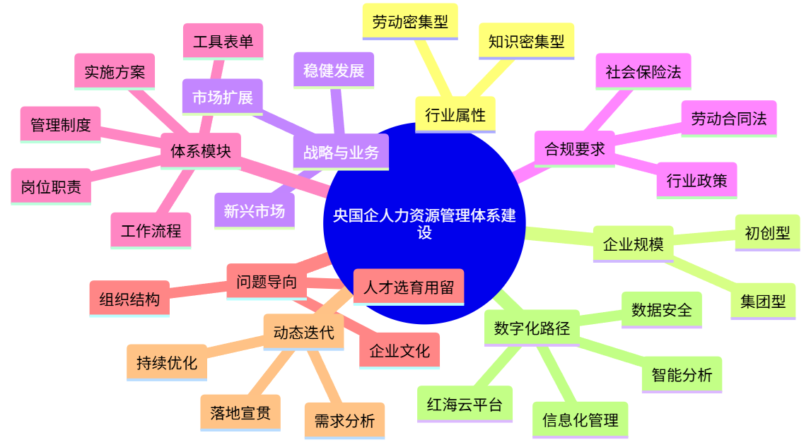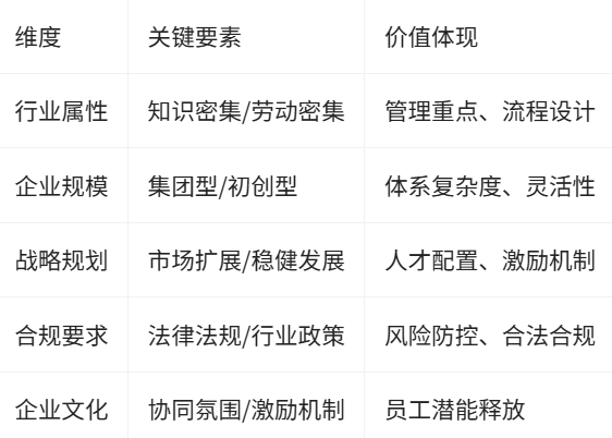 在推动高质量发展过程中,人力资源管理体系的构建已成为央国企战略落地的重要支撑——体系建设不能只追求完备,更需紧密贴合企业实际经营需求和长远发展目标,比方说行业属性、企业规模、发展阶段及文化特征等特性,都是体系设计必须考虑的核心变量。
