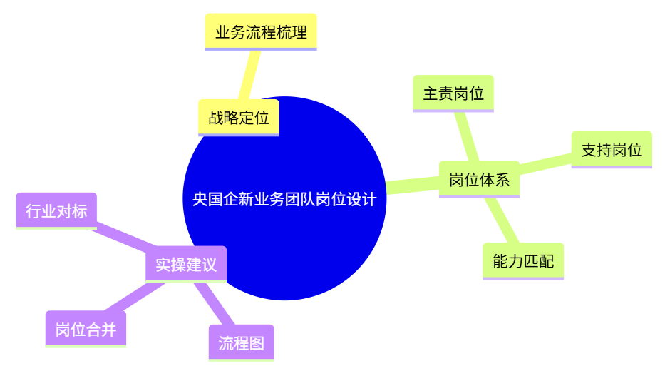 在央国企新业务团队的组建过程中,岗位体系设计是整个组织管理的起点,也是后续编制、激励机制科学落地的基础。不同于传统业务部门的岗位复制,新业务往往面临业务模式尚未固化、流程频繁调整的现实,岗位设置必须以企业战略目标和实际业务流程为核心,而只有将岗位设计牢牢嵌入新业务的主责流程,企业才能确保每一项关键任务都有人负责、每一个环节都得到专业承接。